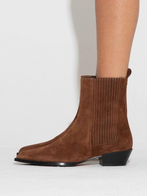 Belinda are Aeyde’s low-heel cowboy boots with Chelsea-style elasticated gussets and heel loops inspired by traditional work boots.