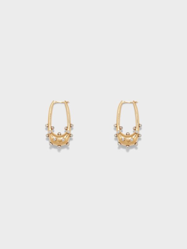 Elias are small, contemporary hoop earrings that balance slender proportions with sculptural bases. This design features Aeyde’s signature textured bubble detail.