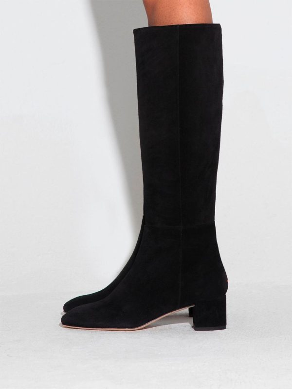 Laura are sleek knee-high boots with squared toes, sturdy block heels, slim shafts, and full-length zips.