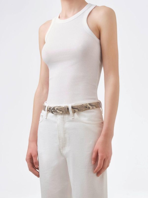 Leona is Aeyde’s elegant medium-width leather belt with the house’s signature metal buckle.