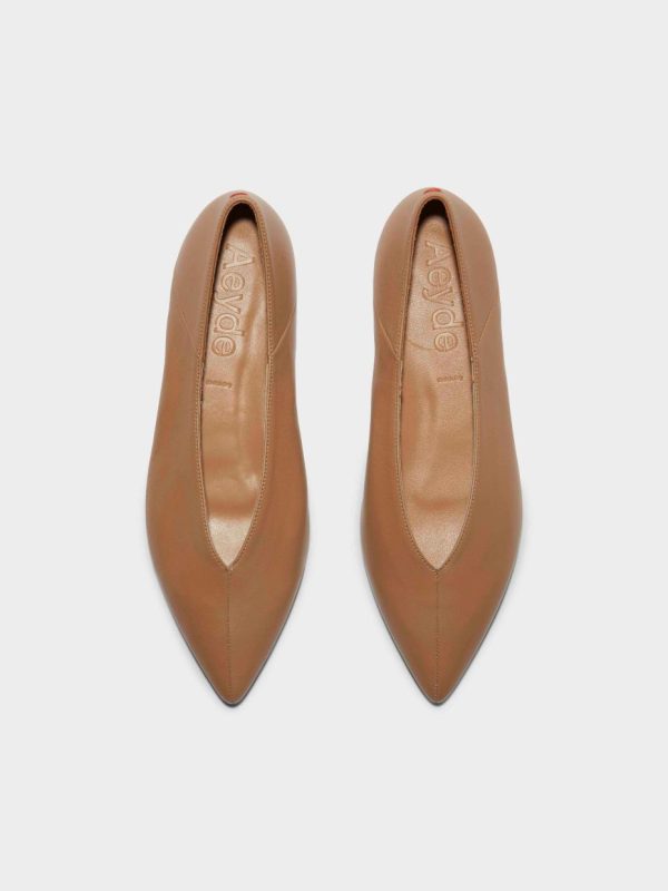 Moa are the ballet flats defined by their stitched seams and angular toes. This style, crafted from soft nappa leather, has high vamps that lend a point of interest to the bridges of the feet.