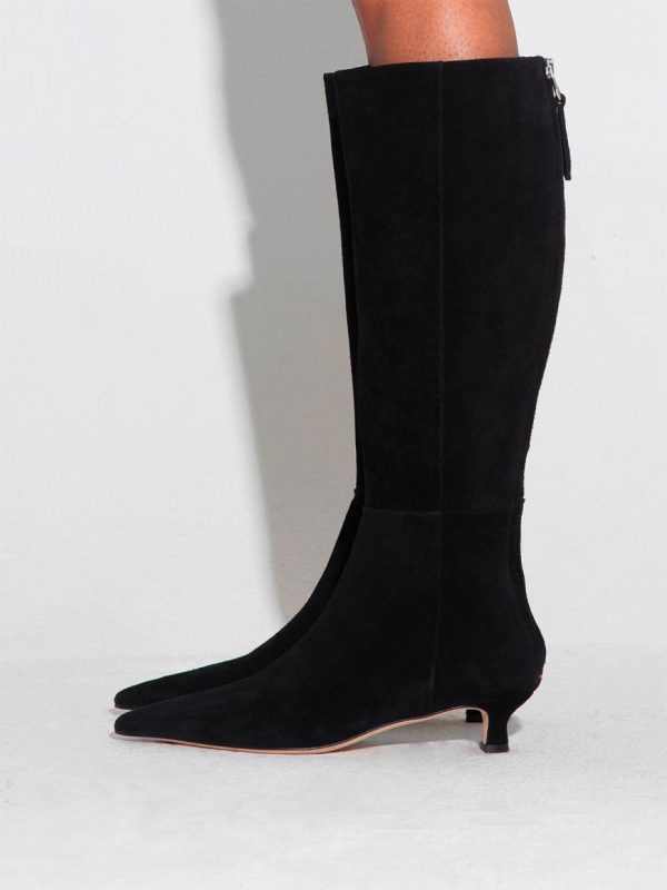 Zazie are Aeyde’s chic, chisel-toe knee-high boots designed in sleek profile with wearable kitten heels and understated seamed shafts. This design is the sister style to Aeyde’s Zoe ankle boots.