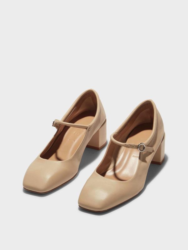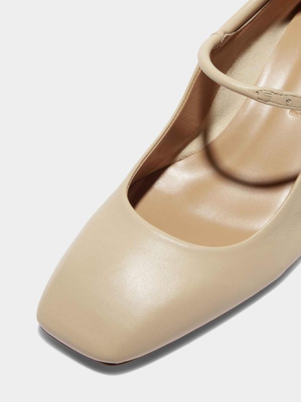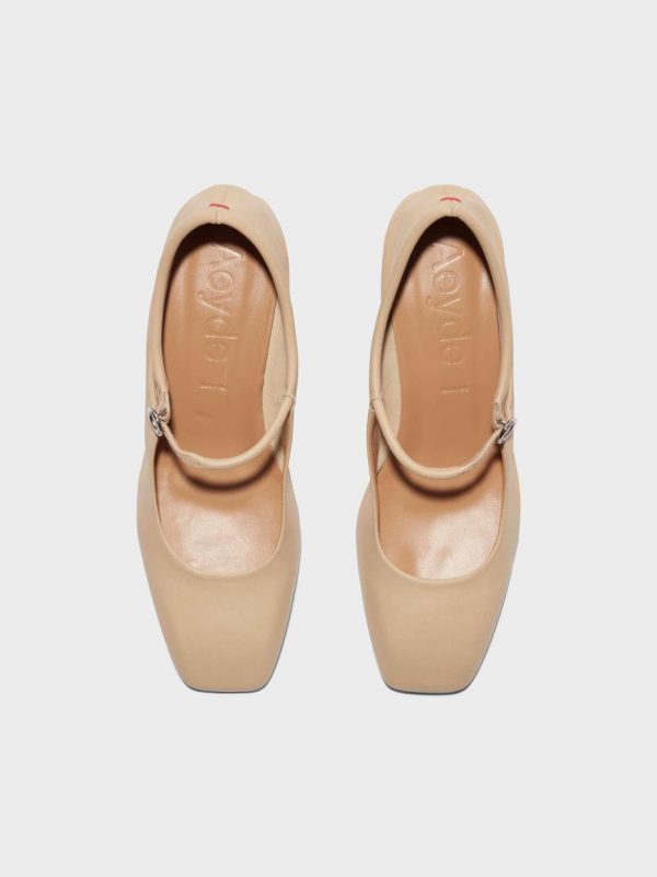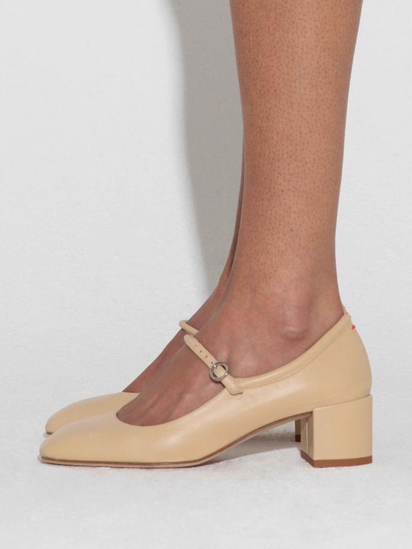 Referencing the key features of Aeyde’s iconic Uma–like Mary-Jane straps and sloped, squared toes–Aline is the alternative with wearable mid-height heels. This design is crafted from supple nappa leather.