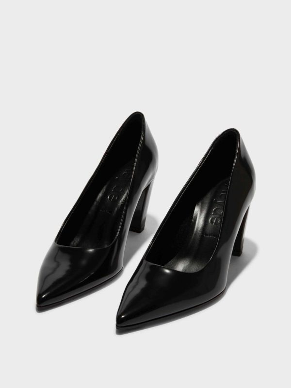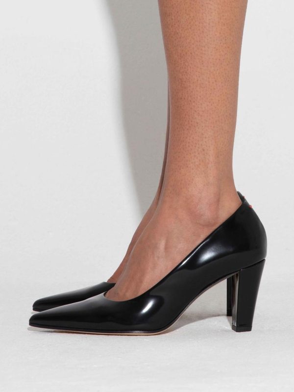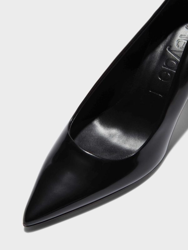 Cerys are striking pumps that combine Aeyde’s affinity for point-toe shapes with luxe materials. This pair arrives in polished calfskin leather, which amplifies the dimension of the design’s midnight-black hue.