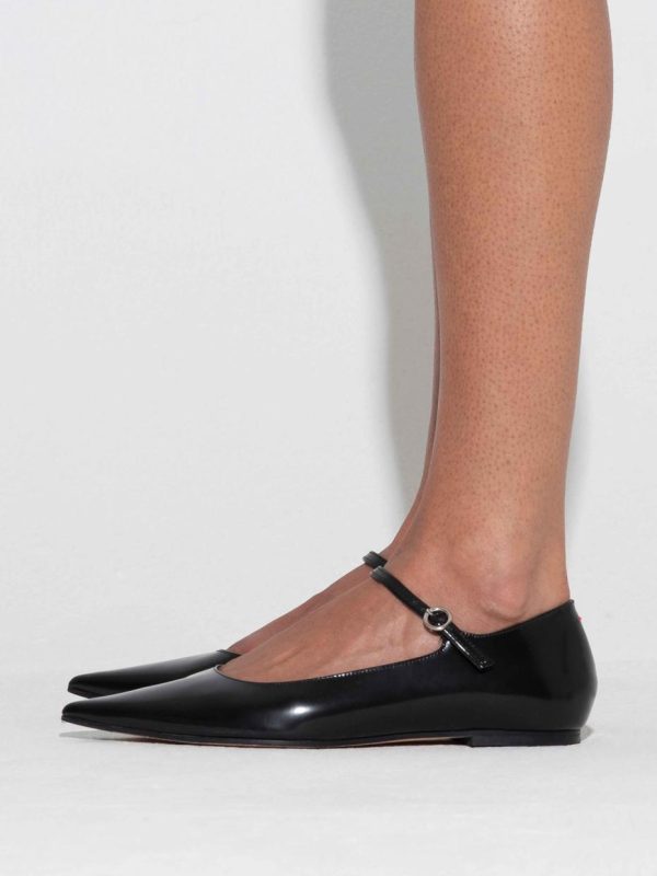Cleo riffs on Aeyde’s affinity for neat, pointed toes and flat, resoundingly chic profiles. This Mary-Jane pair arrives with contoured toplines in oil-slick polished leather and full lambskin leather lining.