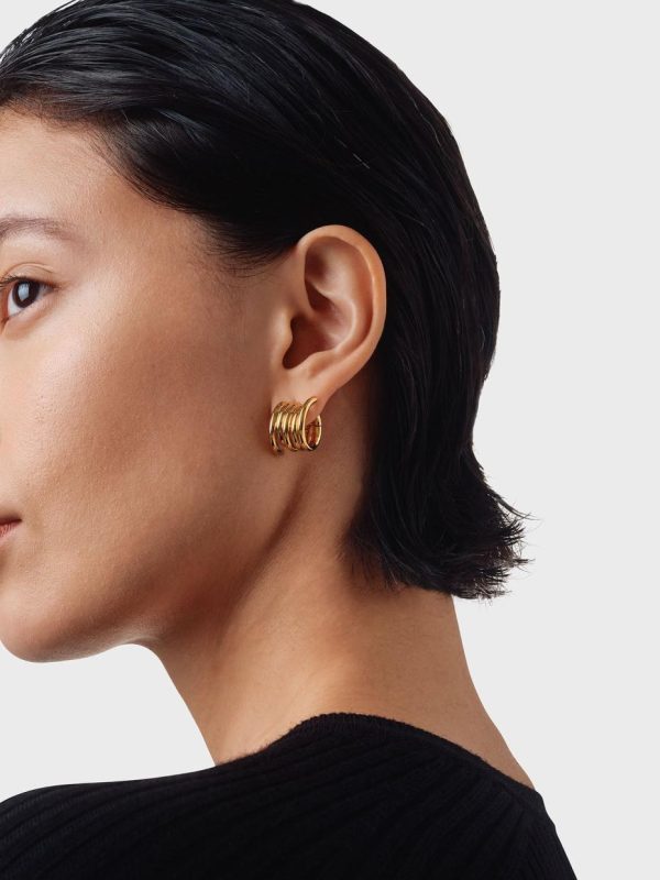 Dillon explores the concept of wires in the most versatile earring shape–hoops. The larger counterpart of the Dean earrings, this pair is crafted from 18kt gold-plated brass that will maintain its sheen, even when worn close to the skin regularly.