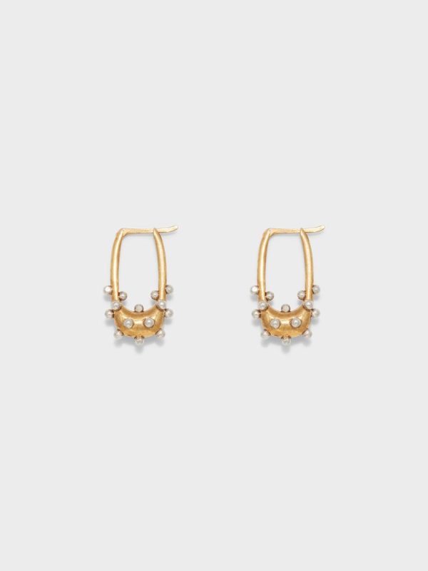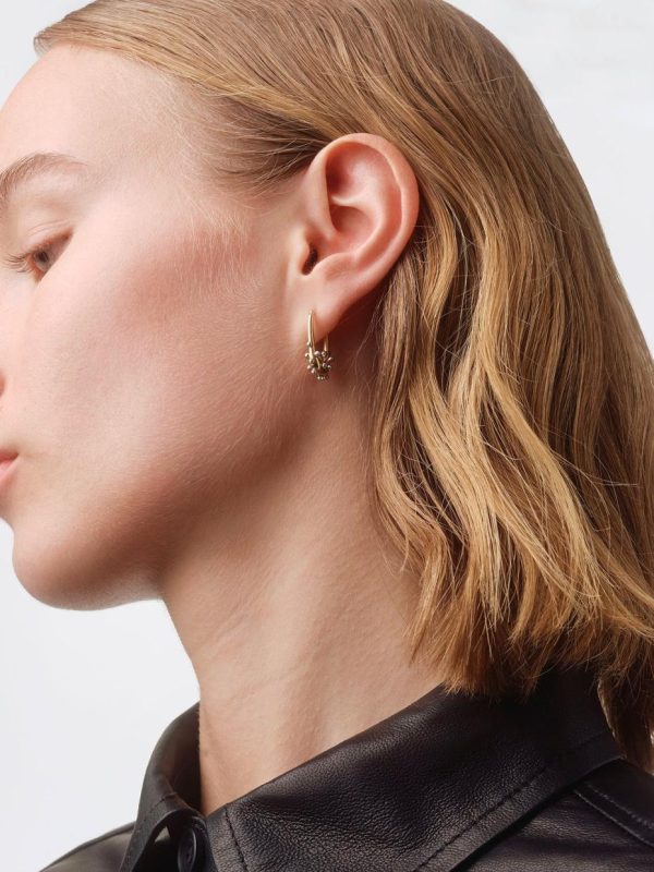 Elijah are miniature, contemporary hoop earrings that balance slender proportions with sculptural bases. This design features playful but subtle bubble or crystal detailing.