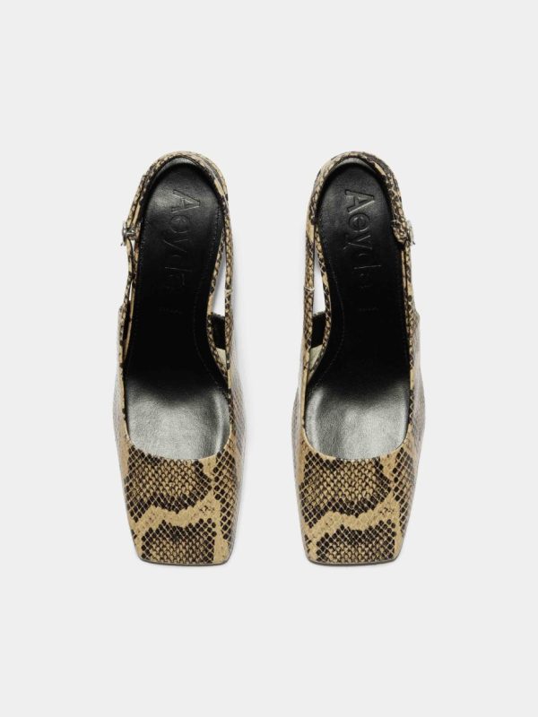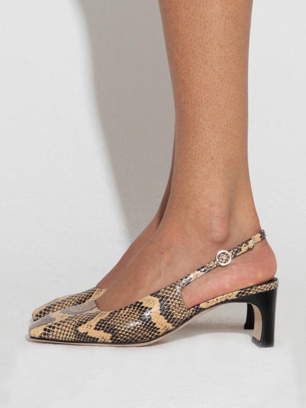Eliza slingback pumps are a contemporary take on a classic design. This pair is crafted from snake-effect leather with accentuated square toes, sculpted block heels, and slender, adjustable straps.