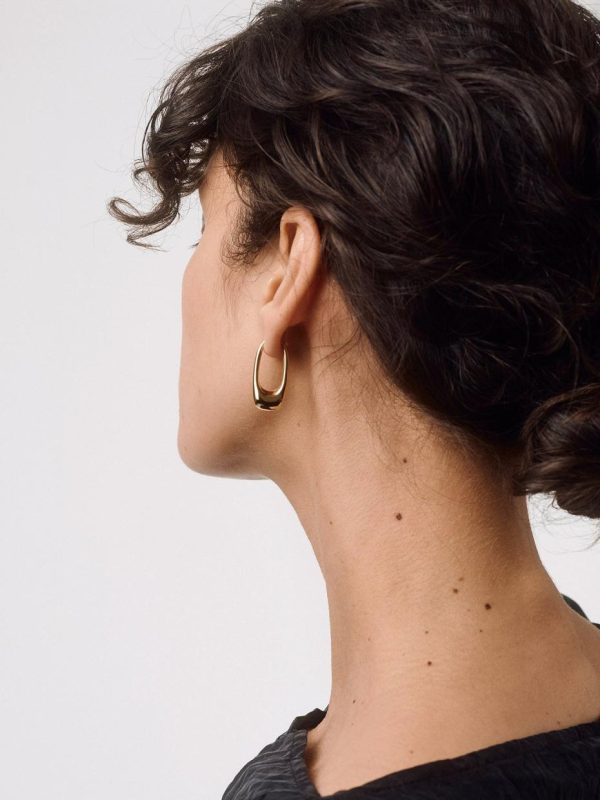 Ellis are medium-sized contemporary drop-hoop earrings that balance slender proportions with sculptural bases.