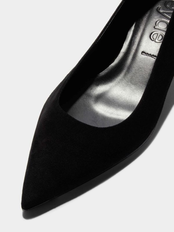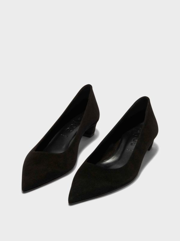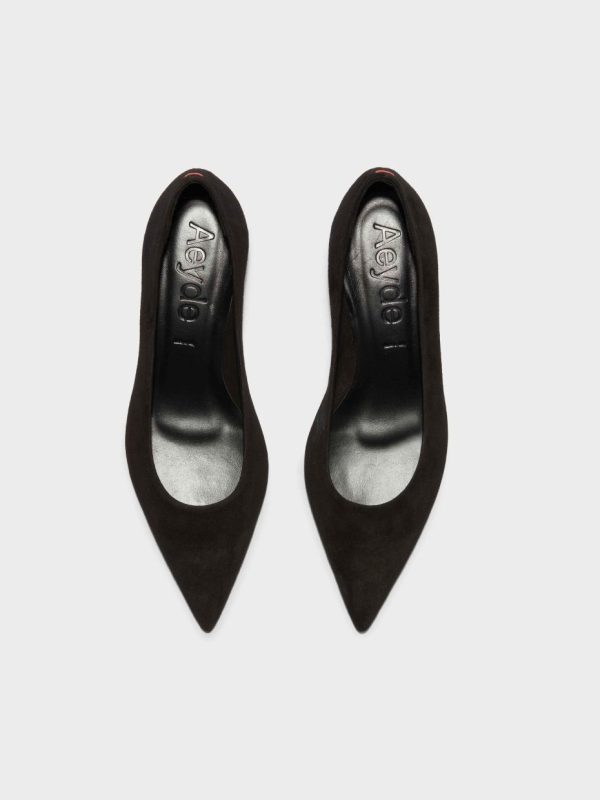 Judi are understated pumps that play on Aeyde’s affinity for point-toe shapes and tapered heels. This pair arrives in soft kid suede, amplifying the luxe look and feel of the seasonal colorways of black, moka, and red.