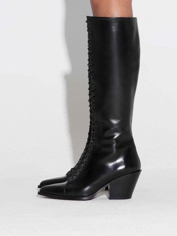 Kristina is a definitive design from Aeyde’s Cowboy Capsule that taps into the house’s verve for lace-up details and minimal colors. Concealed full-length zips create a sleek fit, retaining this knee-high pair’s understated sensibilities.