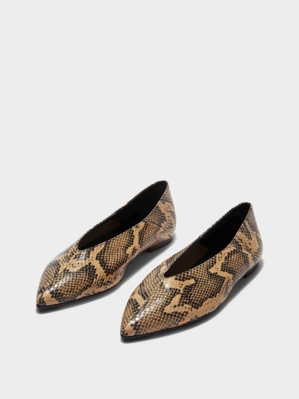 Moa are the ballet flats that turn understated details into key features, as seen with this design’s defined stitched seams. Crafted from luxe snake-effect calfskin leather, this style has high vamps that provide coverage and comfort.