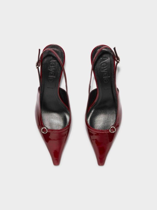 Built on the appeal of the slingback court, Aeyde’s Saba transforms the timeless style into something cutting-edge. Sitting on a spiked mid-heel, the modern chisel-toe, slim adjustable straps with a subtle buckle detail, elevates its silhouette. This season, we introduce Saba in a metallic patent calf leather.