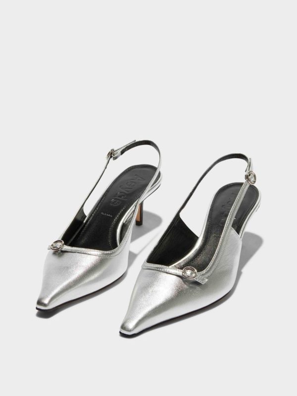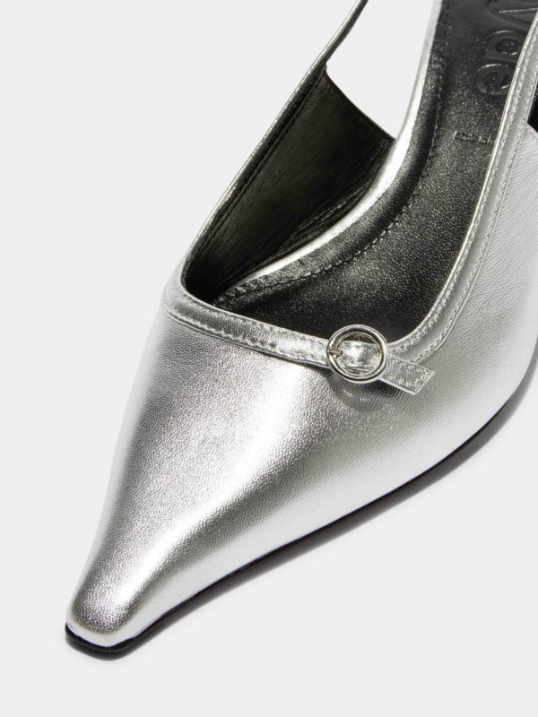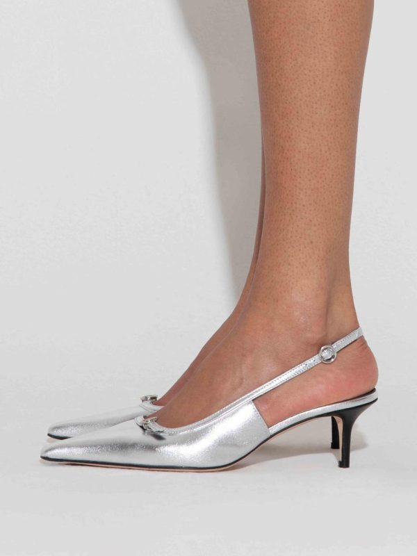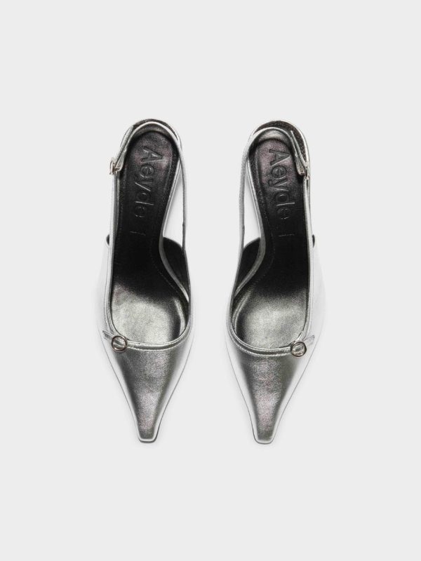 Built on the appeal of the slingback court, Aeyde’s Saba transforms the timeless style into something cutting-edge. Sitting on a spiked mid-heel, the modern chisel-toe, slim adjustable straps with a subtle buckle detail, elevates its silhouette. This season, we introduce Saba in a laminated nappa leather.