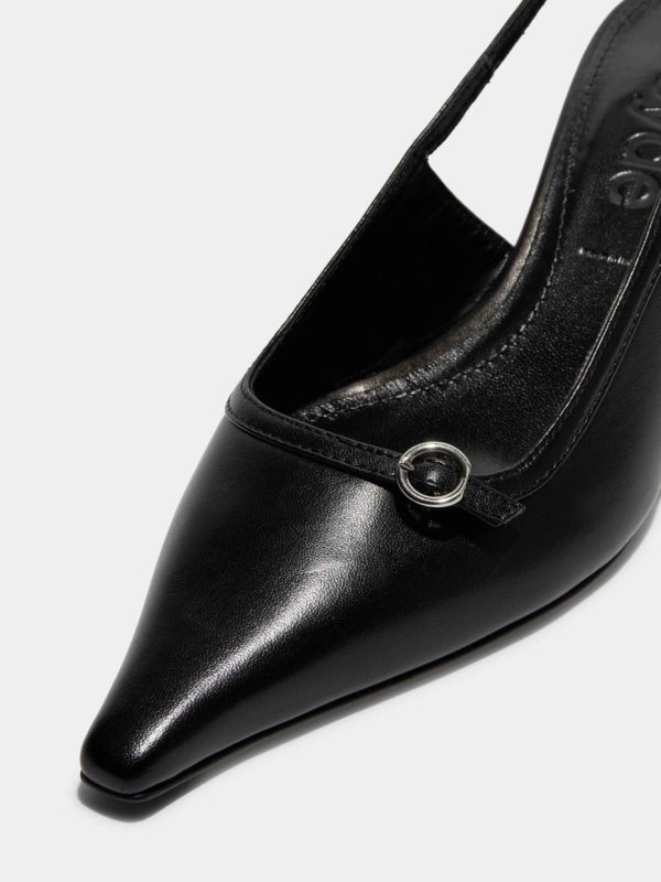 Built on the appeal of the slingback court, Aeyde’s Saba transforms the timeless style into something cutting-edge. Sitting on a spiked mid-heel, the modern chisel-toe, slim adjustable straps with a subtle buckle detail, elevates its silhouette. This season, we introduce Saba in nappa leather.