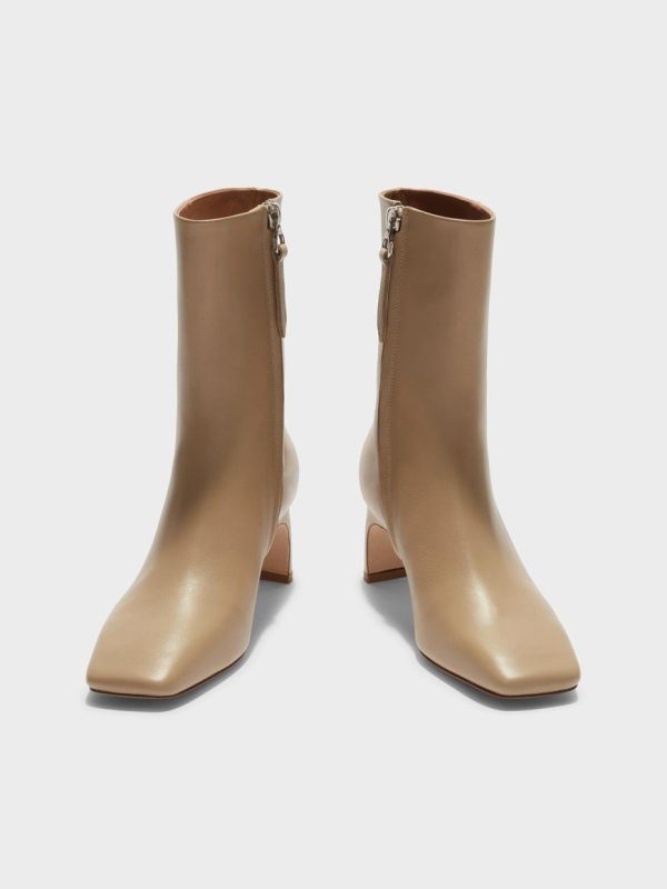 Tabitha are minimal mid-height ankle boots crafted from soft, fine-grain calfskin leather and fully lined in lambskin leather—renowned as the softest material for footwear.